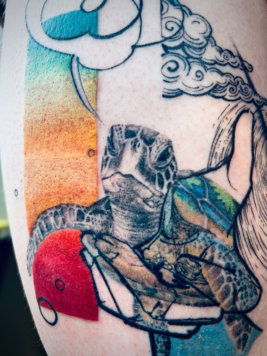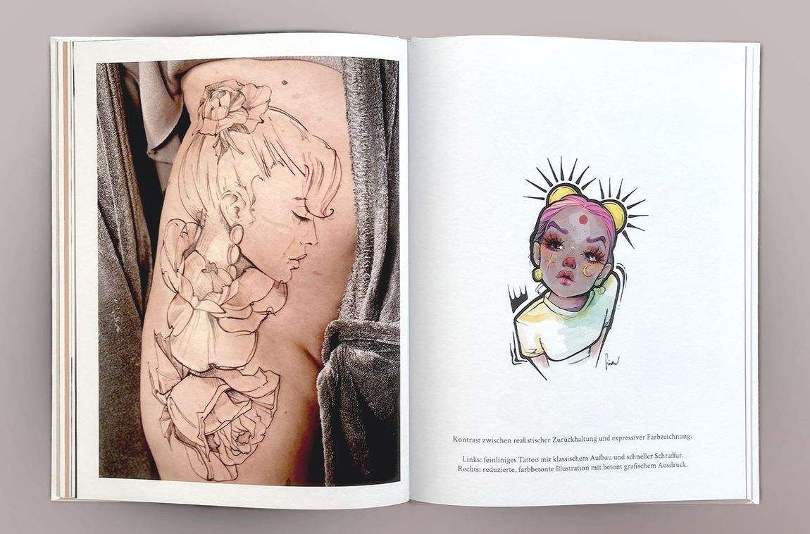 Dieses Verständnis für Komposition, Rhythmus und Wirkung bildet die Grundlage meiner freien künstlerischen Praxis – in Illustrationen, grafischen Arbeiten und Tattoos, die Kunstwerke am Körper sind.